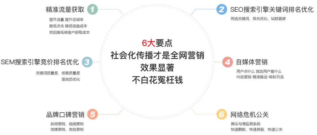 顛覆式網(wǎng)站優(yōu)化打破業(yè)界服務(wù)范圍,全方位從客戶角度出發(fā),布局多種運(yùn)營優(yōu)化渠道。占領(lǐng)制高點(diǎn)!